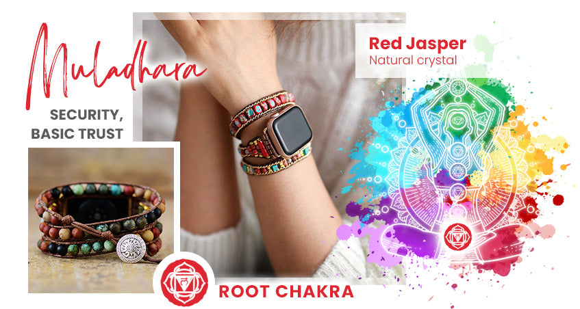 Handmade Natural Red Jasper Apple Watch Straps With Vegan Rope