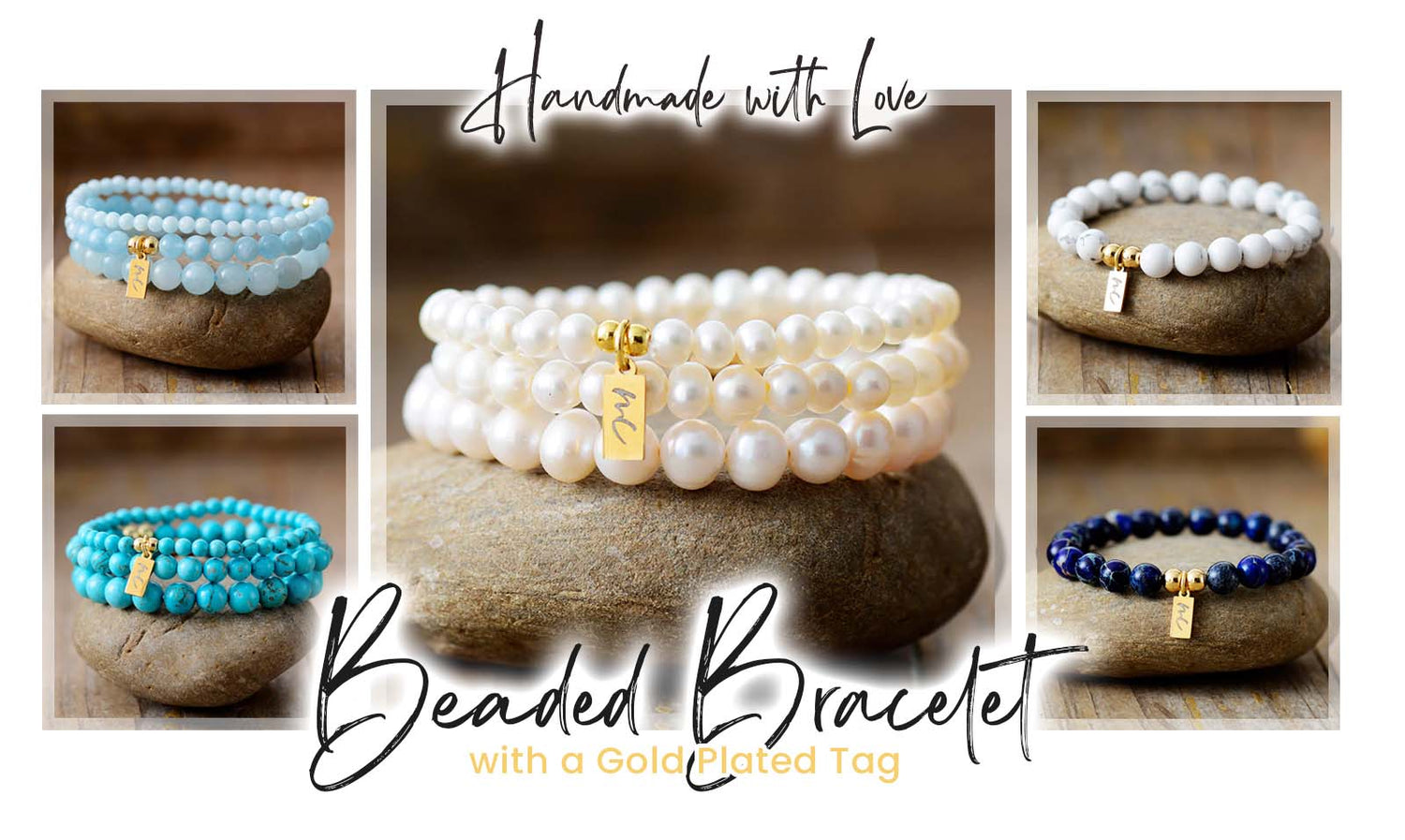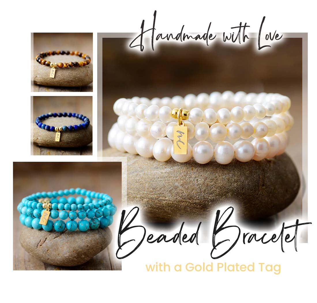 Handmade Pearl Beaded Bracelet with a Gold Plated Tag