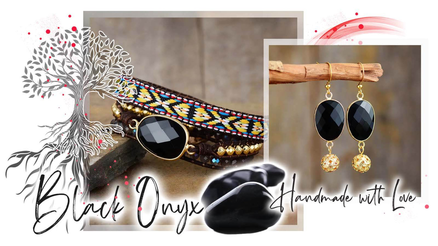 Handmade Black Onyx and Agate Wrap Bracelet