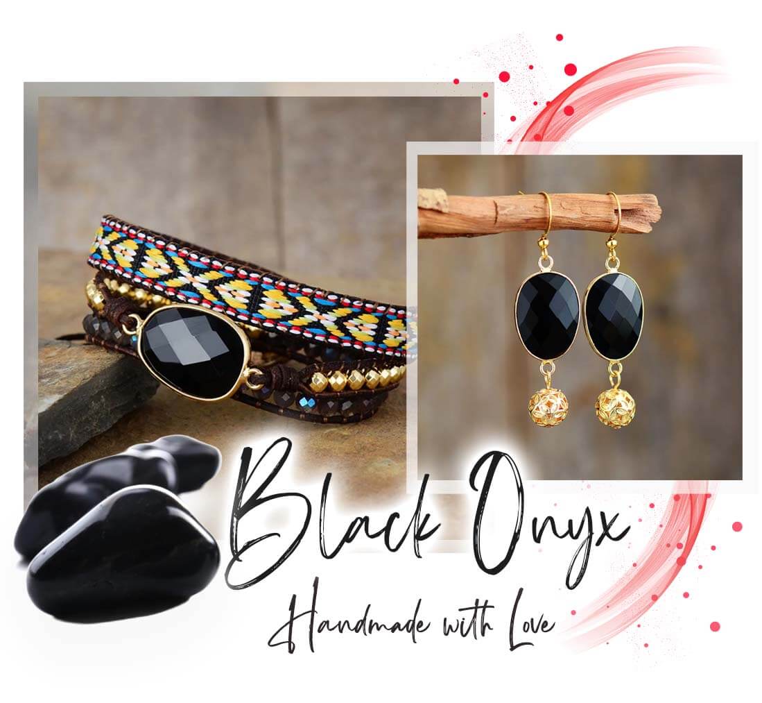 Handmade Black Onyx and weaving Bohemian Bracelet
