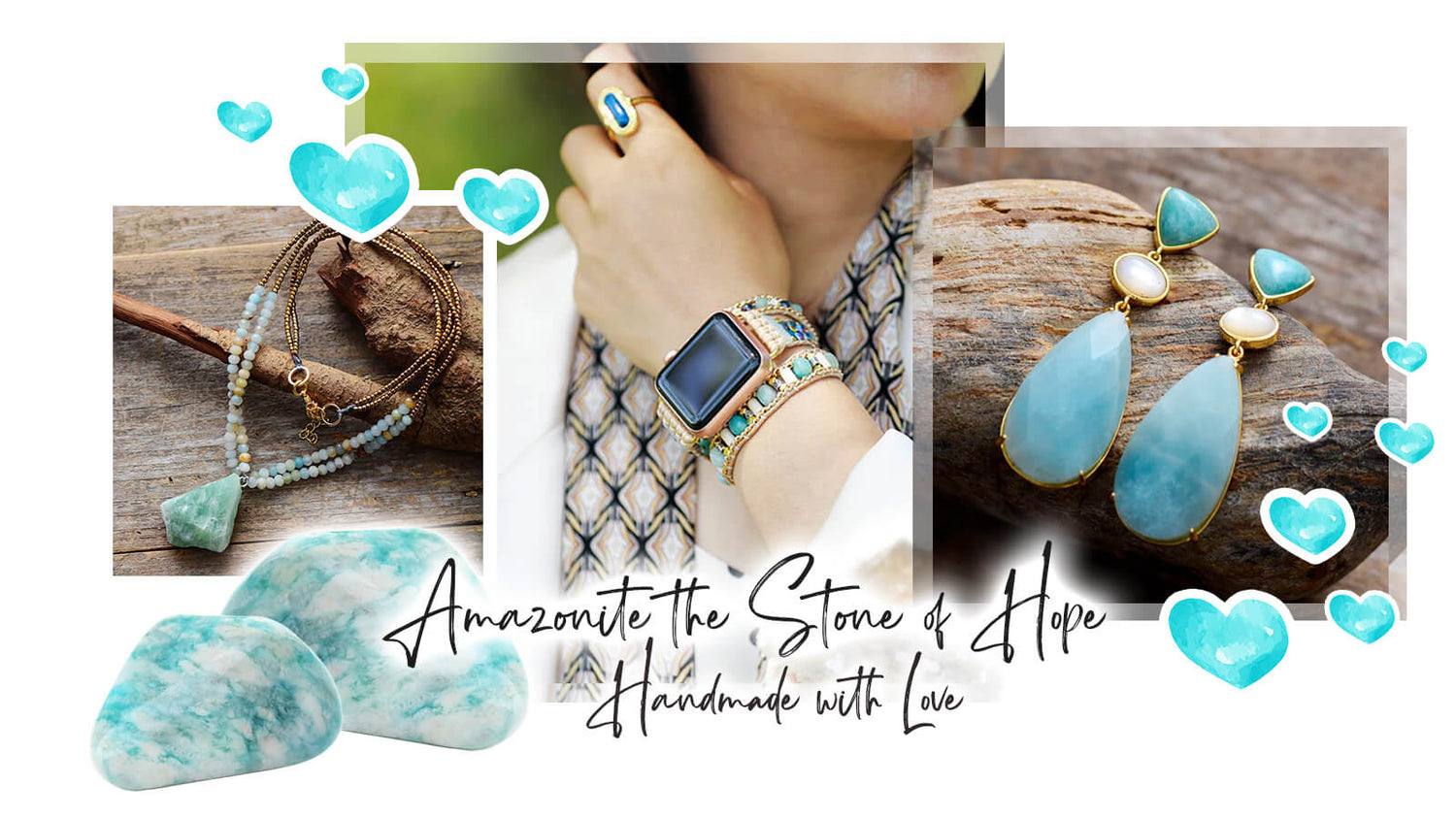 Handmade Natural Amazonite and Jasper Bracelet - 19.7 Inches + 3 closures