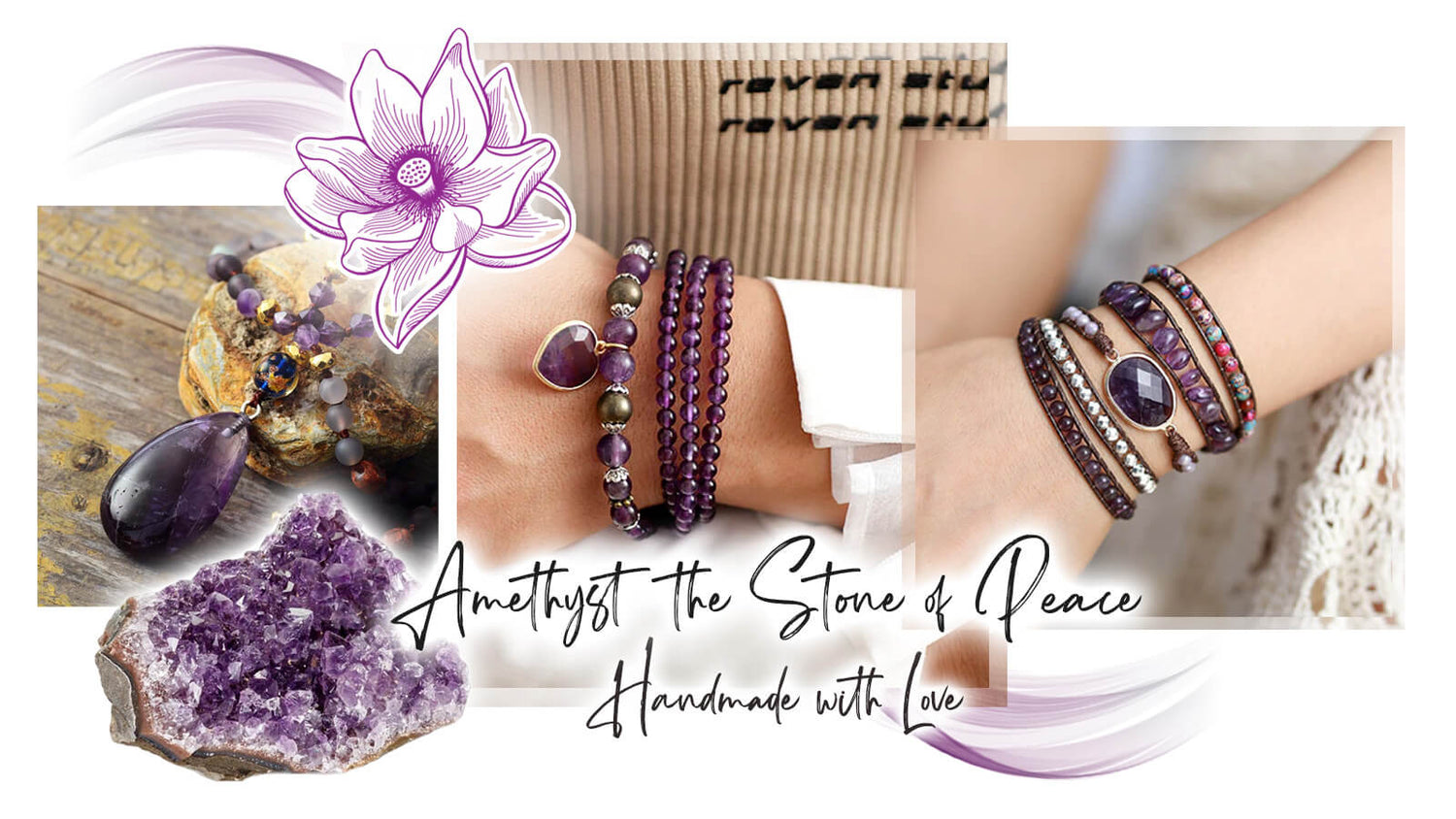 Handmade Amethyst Jasper and Hematite Wrap Bracelet - 32.5 Inches + 3 Closures