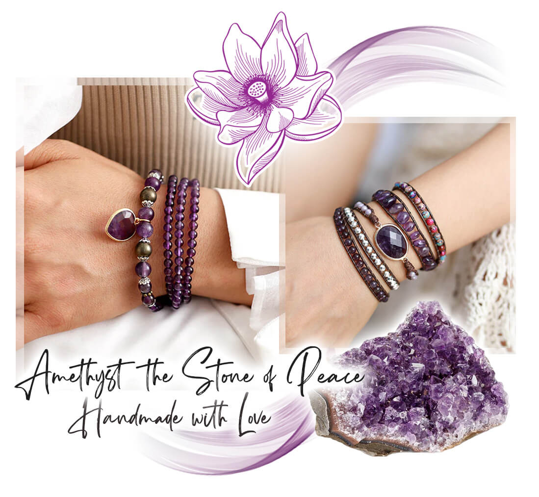 Handmade Natural Amethyst & Jasper Leather Bracelet 19.7 inches + 3 closures
