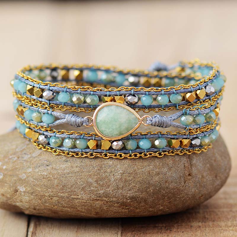 Not only does the Handmade Natural Amazonite and Metal Bracelet with Vegan Rope look great, it makes the perfect gift for someone.