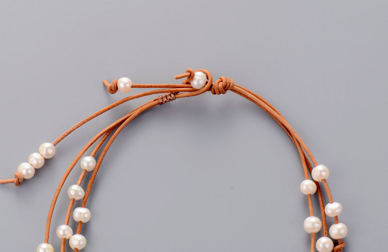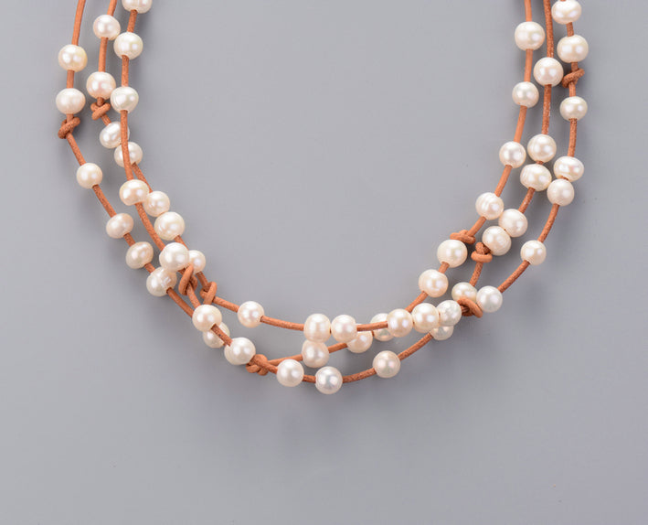 MantraChakra 3 Layer Leather Freshwater Pearl Necklace